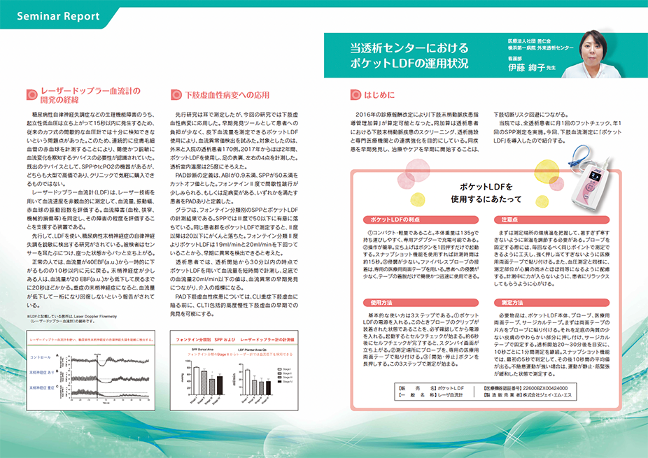血液透析患者における下肢末梢動脈疾患の早期発見 2023.12.08 日本フットケア・足病医学会年次学術集会共催学術セミナーレポート[パンフレット]ー血液透析患者における下肢末梢動脈疾患の早期発見ー [業種]医療機器メーカー [仕様][A4×4P] [担当]企画/構成/原稿執筆/デザイン [制作期間]約6ヵ月 ・セミナー動画を資料として、企画構成、原稿書き起こし、デザインまで行いました。 中面